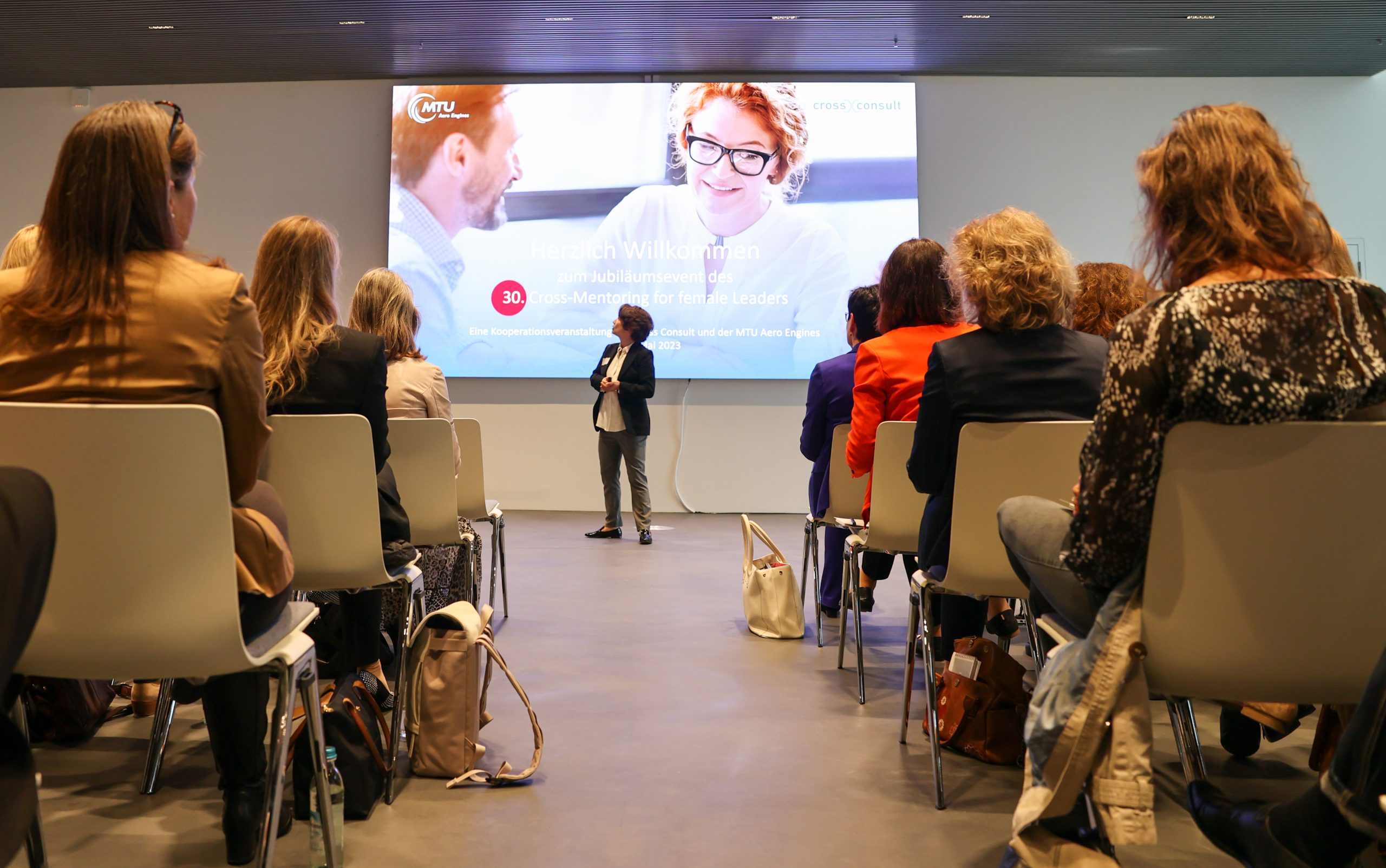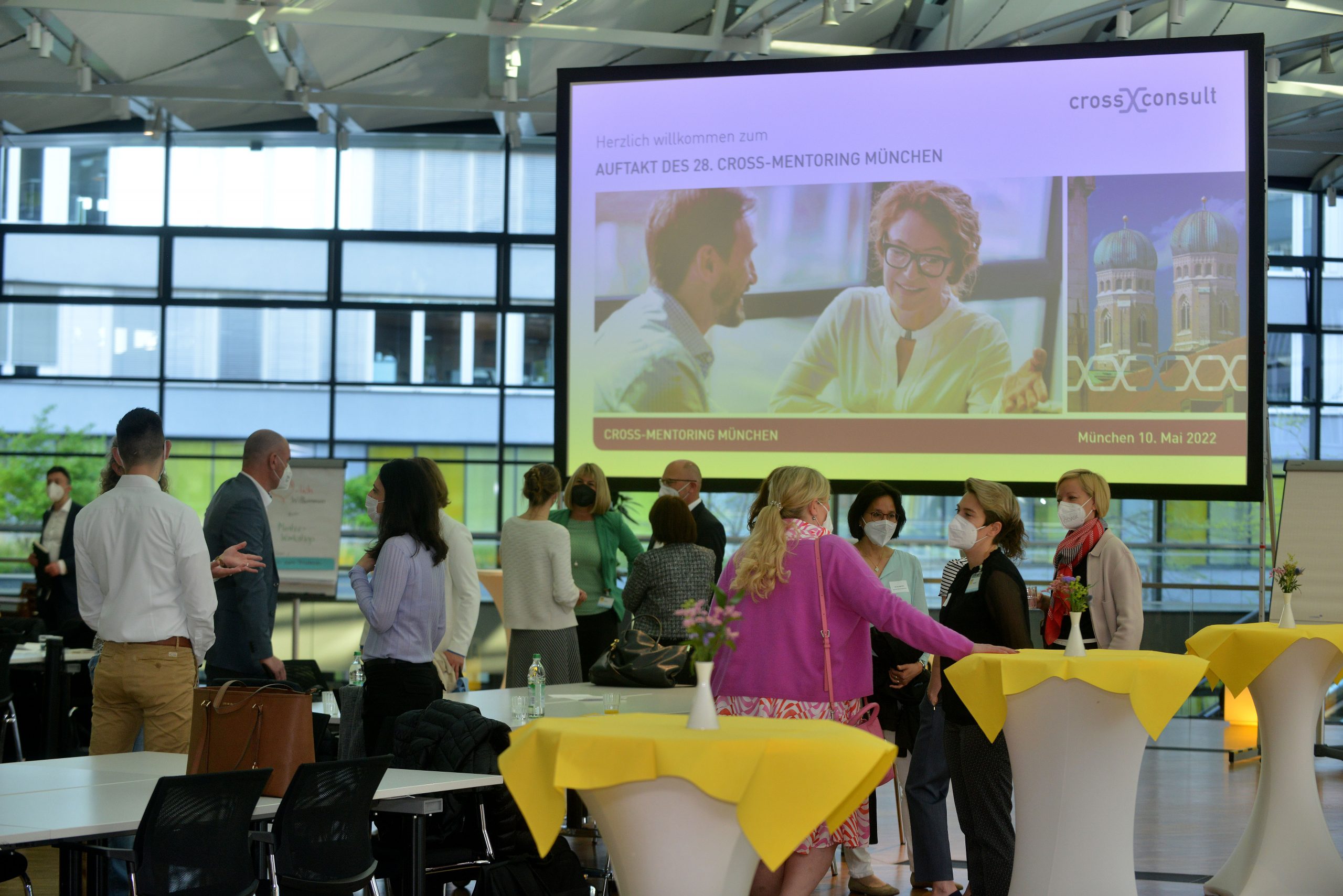 Das Cross Mentoring München richtet sich an weibliche Führungskräfte auf unterer und mittlerer Ebene. Sie werden ein Jahr lang von erfahrenen Mentorinnen und Mentoren aus anderen Unternehmen begleitet. Die Tandems treffen sich eigenverantwortlich, definieren ihre Ziele selbst und gestalten ihre Mentoring-Beziehung individuell.